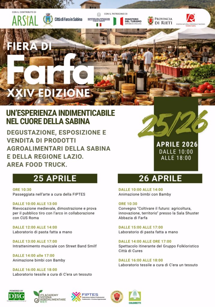 Torna la fiera di Farfa 2026: due giorni tra cucina sabina, prodotti tipici ed eventi nel cuore del Lazio