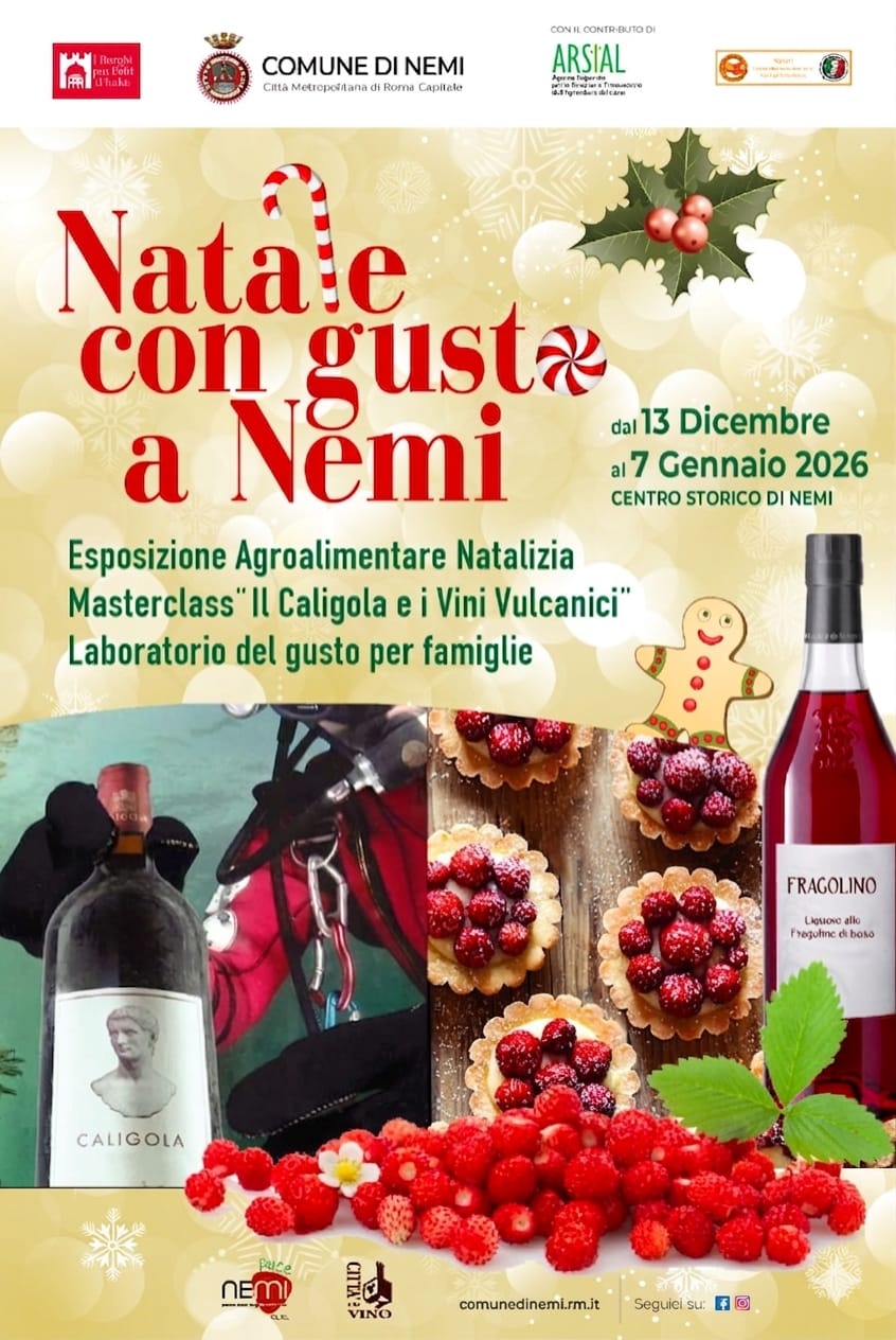 Nel cuore dei Castelli Romani, a pochi chilometri da Roma, il borgo di Nemi torna a farsi spazio tra gli eventi più seguiti del periodo natalizio con “Natale con gusto a Nemi”. Dal 13 dicembre al 7 gennaio 2026, il centro storico ospita una rassegna che mette insieme cultura, gastronomia e tradizione locale, costruendo un calendario pensato per attirare visitatori anche da fuori regione. Le strade si riempiono di stand, luci e profumi riconoscibili, quelli dei dolci artigianali e dei prodotti lavorati sul posto. Il contesto non è casuale: Nemi, affacciata sul lago omonimo, conserva una forte identità culinaria, legata soprattutto alle fragoline di bosco, elemento distintivo che torna in molte preparazioni, anche durante le festività.